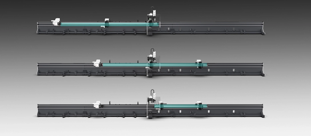 By clamping the pipe with the third chuck for forward or reverse movement, full-length pipe processing or the final finished section processing is realized. It maximizes material utilization and supports sustainable and efficient manufacturing.