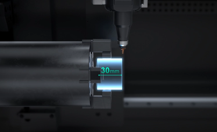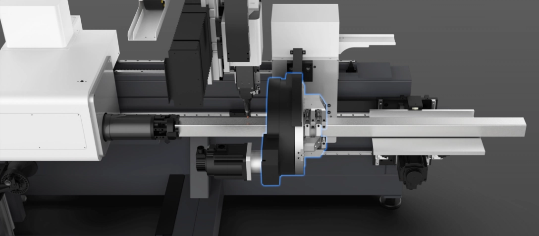 With front chuck displacement, the laser head is positioned between the front and rear chucks for cutting, ensuring the cutting accuracy of long workpieces and achieving efficient upgrading.