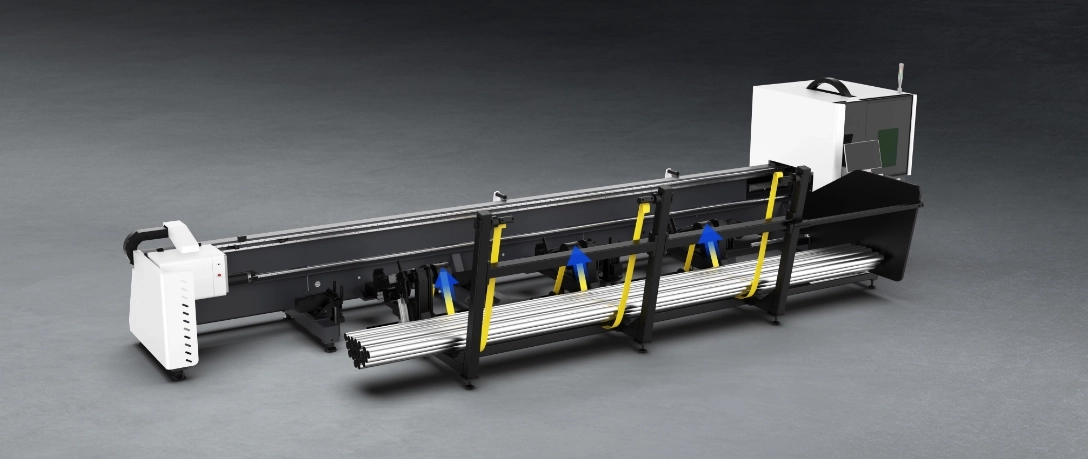 The feeding area adopts two support methods: roller and follow-up. The blanking area is equipped with flap follow-up support, with full-process servo intelligent control to ensure the stability and precision of pipe cutting.